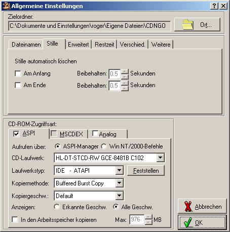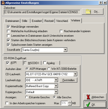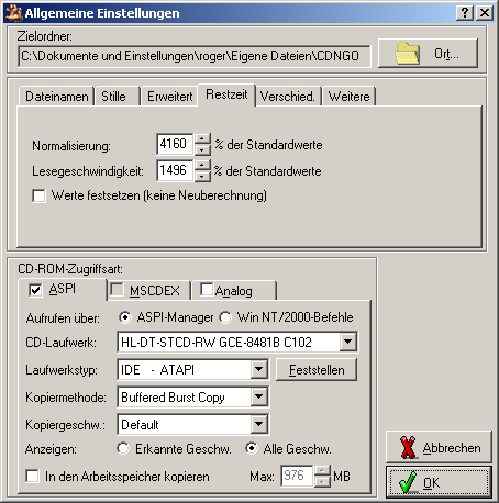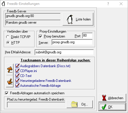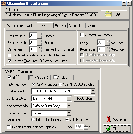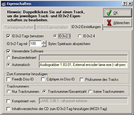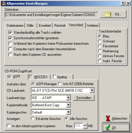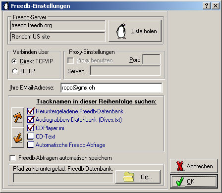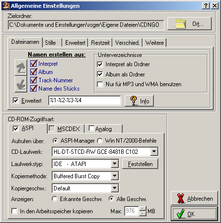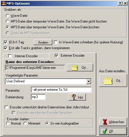 Einstellungen - noch mit freedb und LAME 3.96.1