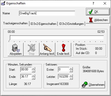 wird die WAV-Datei erstellt. Sie hat eine Gesamtgrösse von 366.29 Mbytes.