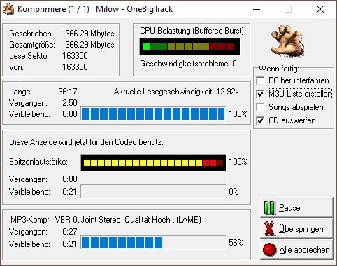 der WAV-Datei generiert Audiograbber dann das grosse MP3-File mit den Tracks 1