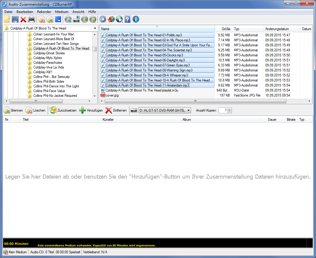 brennen kannst, wie die CD Platz hat. Meistens also