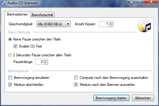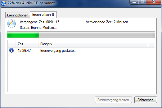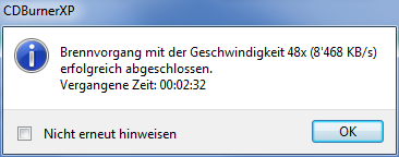 Der Brennvorgang war erfolgreich. Die CD wird automatisch