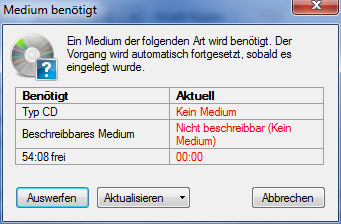 Da ich noch keine CD im Laufwerk habe, werde ich