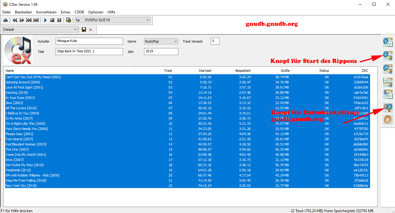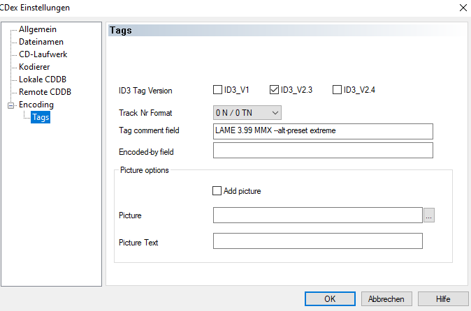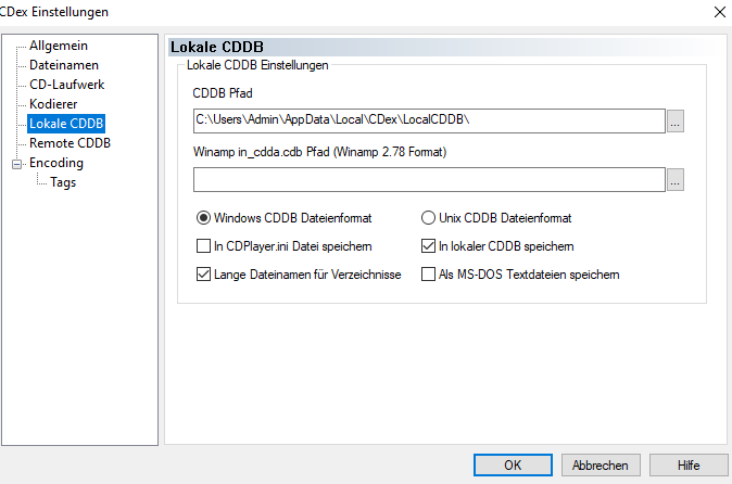 CDex erlaubt es Dir, neben der Bezeichnung