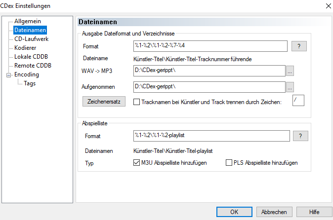 CDex bietet die Möglichkeit auch gleich M3U- und PLS-Playlisten