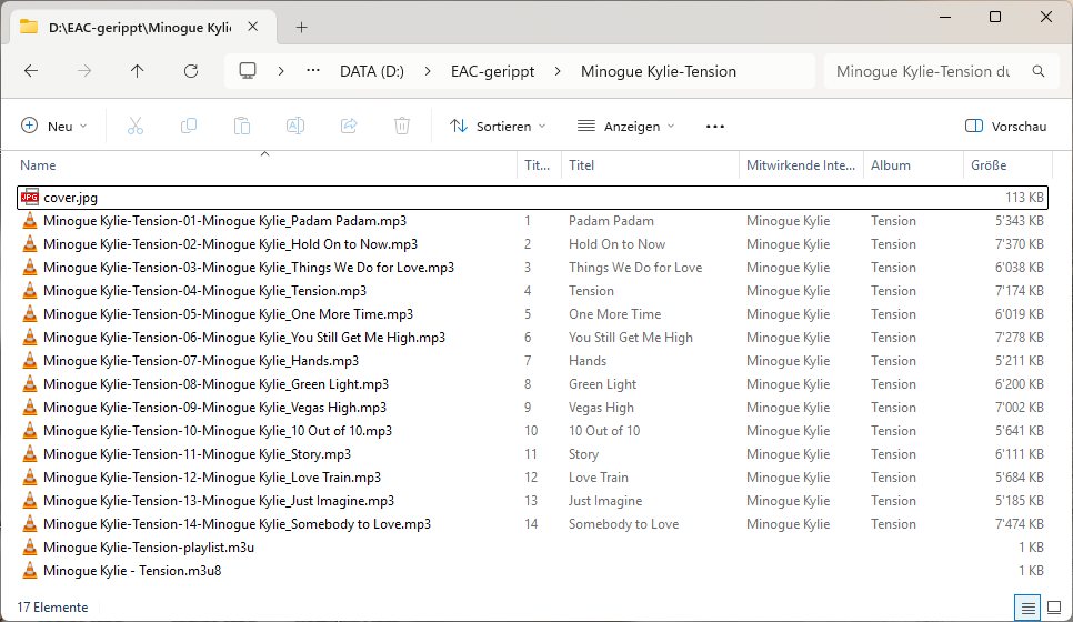 unbedingt darauf, dass CD Title und CD Artist und Comment LAME 3.100.1 VBR0 korrekt