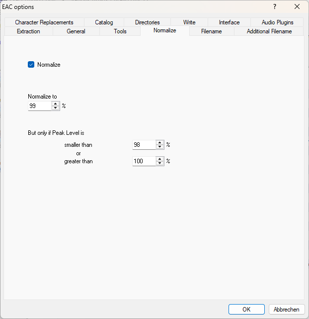 dass der lauteste Punkt einen definierten Maximalwert erreicht. Im Beispiel wird auf 99% normalisiert. Dadurch klingt das Album oder die