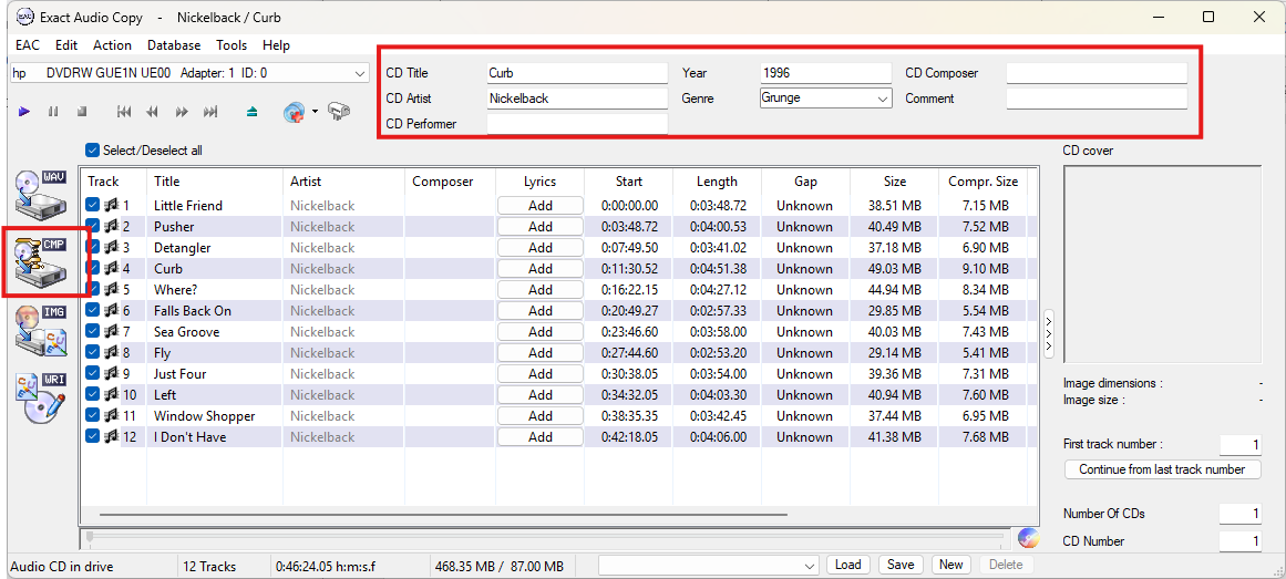 ich rippe, fülle ich die CD-Informationen (auf der Hauptmaske)