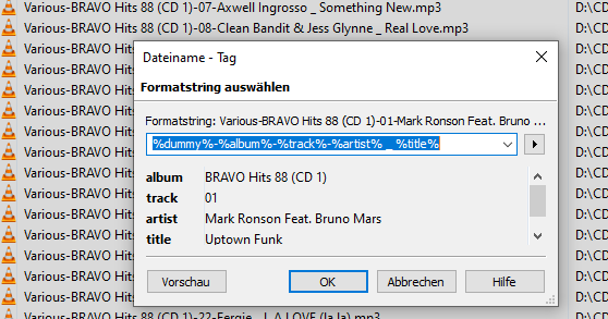 vorliegen, passe einfach in MP3Tag die Formel an.